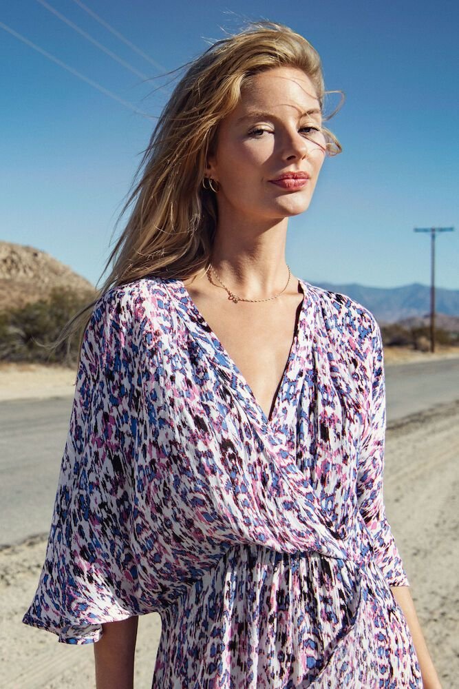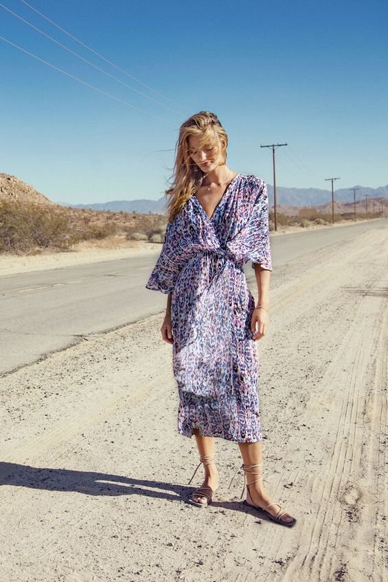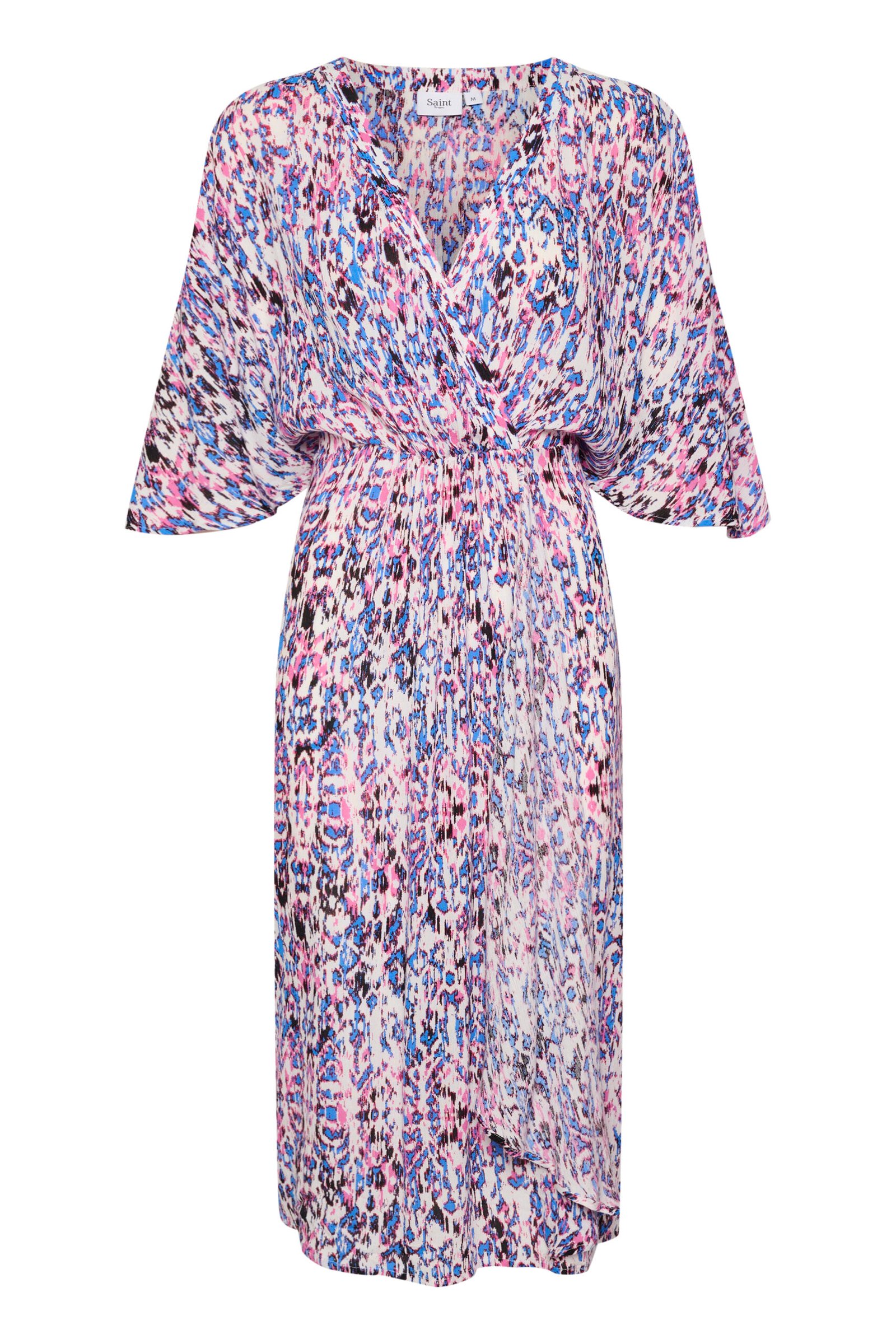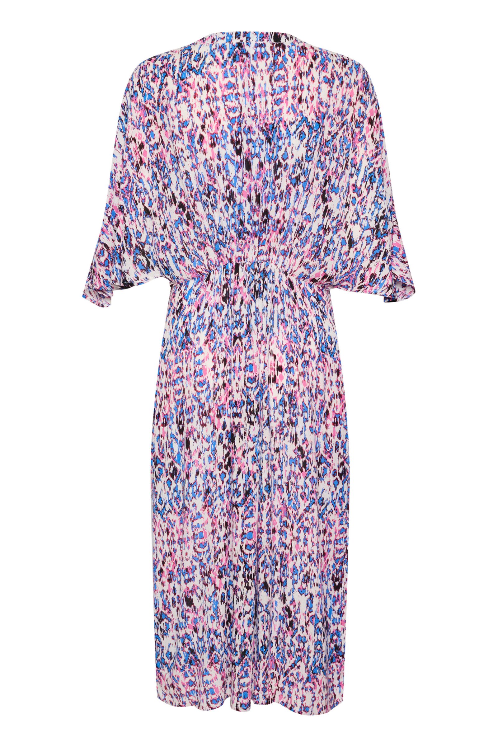 Αέρινο μίντι φόρεμα με κρουαζέ λαιμόκοψη και χαλαρή, θηλυκή γραμμή που αγκαλιάζει διακριτικά τη μέση. Διαθέτει φαρδιά μανίκια 3/4 (κιμονό), ελαστική μέση για άνετη εφαρμογή και ανάλαφρη κίνηση σε κάθε βήμα. Το αφηρημένο μοτίβο σε ροζ, γαλάζιους και σκούρους τόνους χαρίζει μοντέρνο χαρακτήρα και ξεχωριστή κομψότητα, ιδανική για all-day εμφανίσεις, καλοκαιρινές εξόδους και πιο ιδιαίτερες περιστάσεις.