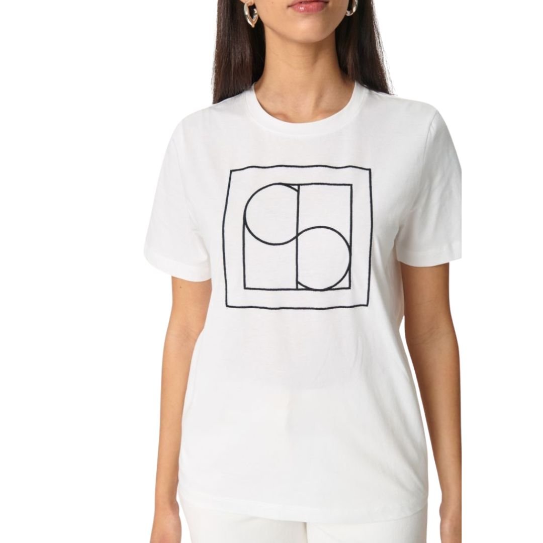 Basic κομμάτι από τη συλλογή της Soaked in Luxury. T-shirt φτιαγμένο από 100% βαμβάκι σε χρώμα σπασμένο λευκό. Διαθέτει κλασική στρογγυλή λαιμόκοψη, κοντά μανίκια και κεντητό γεωμετρικό σχέδιο στο μπροστινό μέρος, που χαρίζει μοντέρνο αλλά και διαχρονικό χαρακτήρα. Ένα ευκολοφόρετο κομμάτι που απογειώνει τις casual εμφανίσεις και μπορεί να συνδυαστεί εύκολα με τζιν, παντελόνι ή βερμούδα.