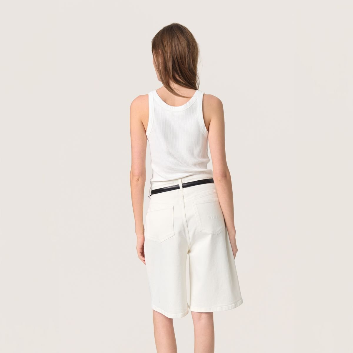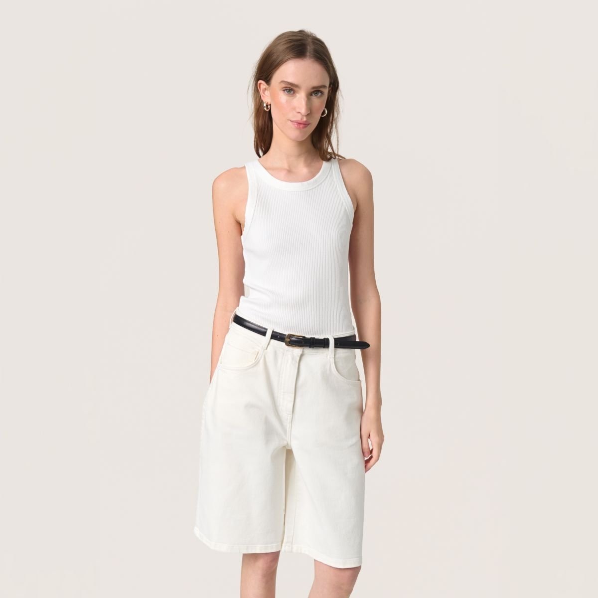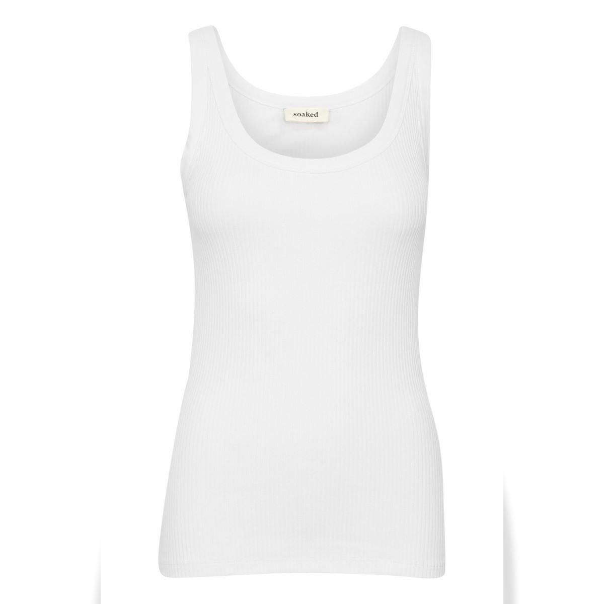 Λευκό βαμβακερό τοπ σε στενή γραμμή και στρογγυλή λαιμόκοψη. Αμάνικο.