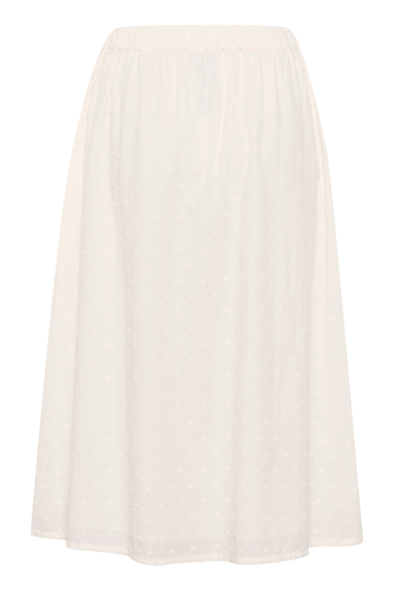 Μια κομψή φούστα μίντι σε απαλό εκρού τόνο που αποπνέει διαχρονική θηλυκότητα και minimal αισθητική. Η ανάγλυφη υφή με διακριτικά dots χαρίζει ενδιαφέρον χωρίς υπερβολές, ενώ η ελαστική μέση εξασφαλίζει άνετη εφαρμογή και ευελιξία στην καθημερινότητα.
