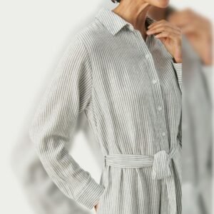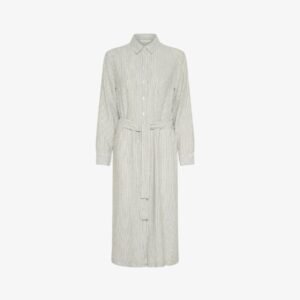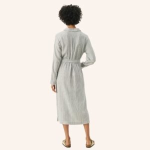 Ριγέ μακρύ φόρεμα, γραμμή σεμιζιέ. Με ζώνη και τσέπες στα πλάγια. Κουμπώνει με κουμπιά μπροστά. Της εταιρείας PART TWO